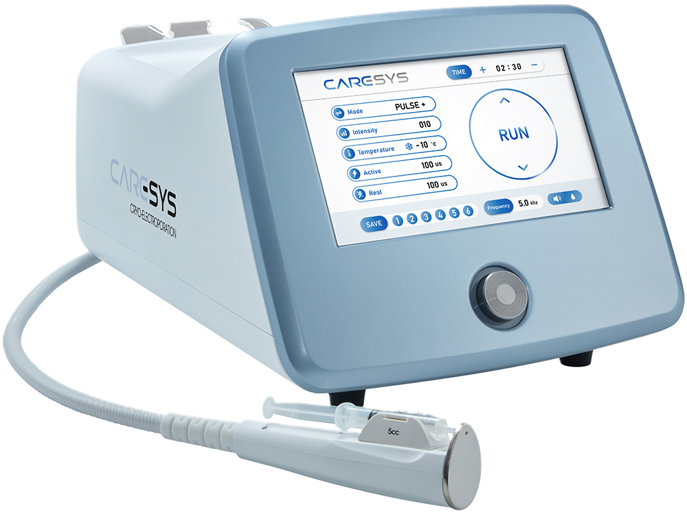 ケアシスは、45℃から-20℃まで施術温度を調節しながら有効成分を導入できる「クライオエレクトロポレーションシステム」を採用しています。