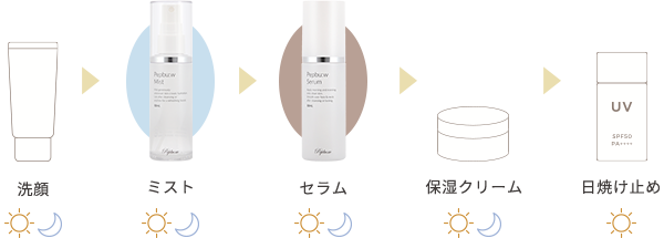 洗顔後、お顔全体にペップビューミストを3プッシュほどスプレーし、化粧水としてご使用ください。