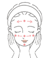 両頬・額・あご先・鼻の5点におき、手のひらでお顔全体にやさしくなじませます。